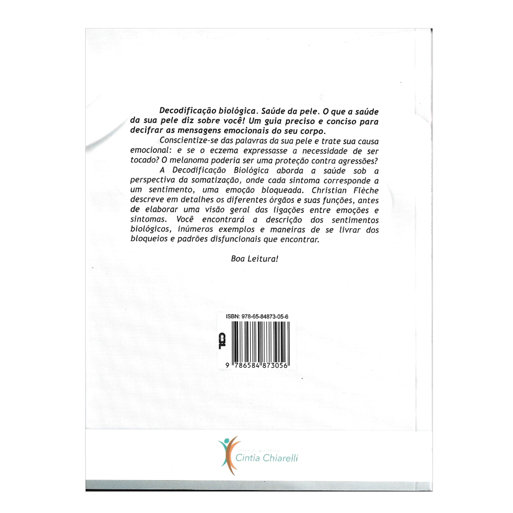 O que a saúde da sua pele diz sobre você? Um guia preciso e conciso para decifrar as mensagens emocionais do seu corpo, por Christian Flèche. Tome consciência das mensagens da sua pele e trate suas causas emocionais: e se o eczema expressasse a necessidade de ser tocado? O melanoma poderia ser uma proteção contra agressões? A Decodificação Biológica aborda a saúde a partir de uma perspectiva emocional, onde cada sintoma é a expressão de um sentimento e uma solução de enfrentamento. Christian Flèche descreve em detalhes os diferentes órgãos e suas funções, antes de fornecer uma visão geral das ligações entre emoções e sintomas. Você encontrará descrições de sentimentos biológicos, inúmeros exemplos e maneiras de romper os bloqueios e padrões disfuncionais que você encontra. Para cada órgão, você encontrará: Anatomia e Fisiologia: Uma descrição anatômica e fisiológica geral desta área do corpo; Parte do órgão afetado: visa especificamente um local do órgão afetado; Conflictologia: esta parte essencial fornece uma descrição do Re-sentir biológico conflitante; Ponto pedagógico: é uma das novidades deste livro, são pontos de informação no seu caminho de papel! Objetivo é ajudá-lo a compreender os princípios que regem o início da doença tais como: pré-conflito, ciclos biológicos, etc. Patologia: especifica a patologia em questão; Sintoma: indica o(s) sintoma(s) específico(a) das fases da doença; Pistas a serem exploradas com prudência: às vezes você também encontrará conselhos sobre como continuar sua escuta de compreensão emocional do sintoma “cautelosamente” porque não temos certeza para impor aos outros; Sentido biológico: descreve o sentido que a doença pode ter; Exemplo: de situações, de doenças, de decodificação; Observação: fornece observações e uma etimologia ou informações sobre o acompanhamento terapêutico